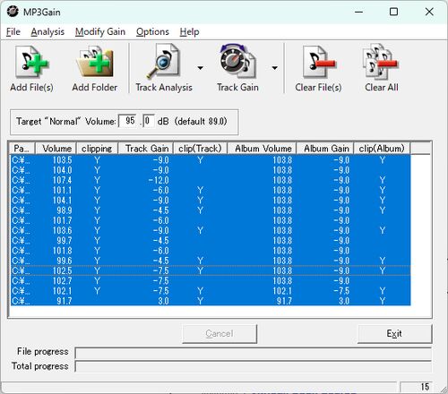 候補曲はmp3で届くのだけれど曲によって音量がまちまちで、合わせて弾いたりKROSS 2で各パートの音量調整するのに少々支障があったり。昨日はふと思い立ってCubase AIで解析して「平均 RMS (AES17)」を確認すると、-12.* dBが1曲、-9.* dBが1曲、-8.* ㏈が1…