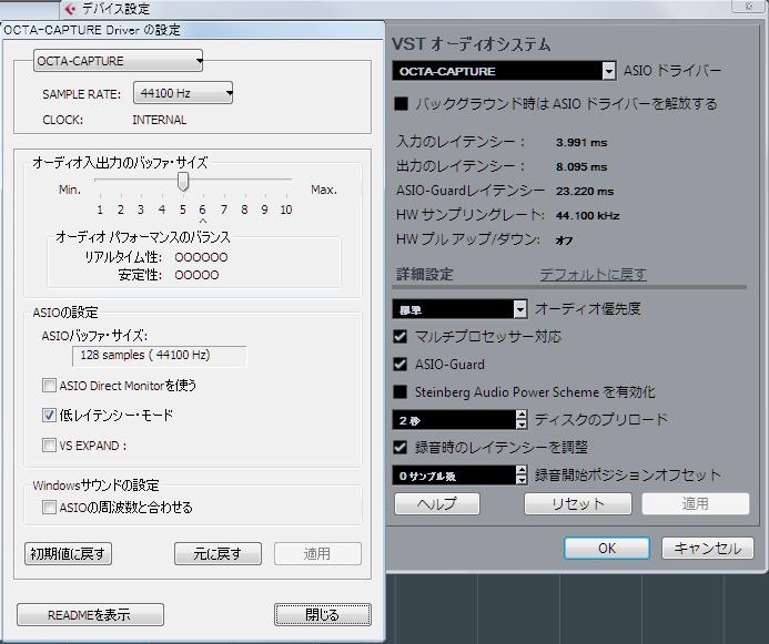 とかなんとかいぢってて気付いたのだけれど、レイテンシーの入力が2.902ms、出力が5.805msって、やけに少ないよーな。こちらでも確認したよーに、UA-1010を直接指定すると↓