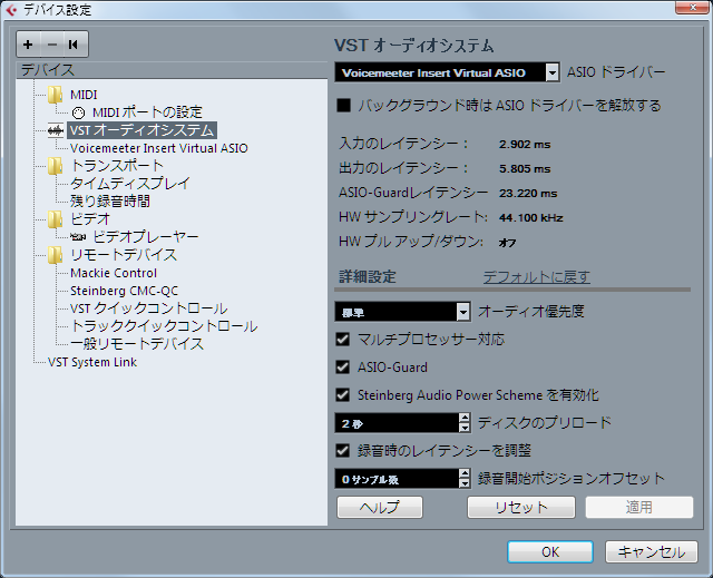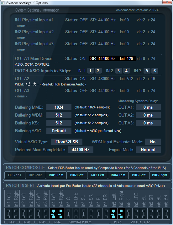 ↑で、入力が3.991ms、出力が8.095msなのよね。UA-1010の設定は同じなのに、Voicemeeter経由のほーが遅延が少ないの?むぅ、不思議だ。