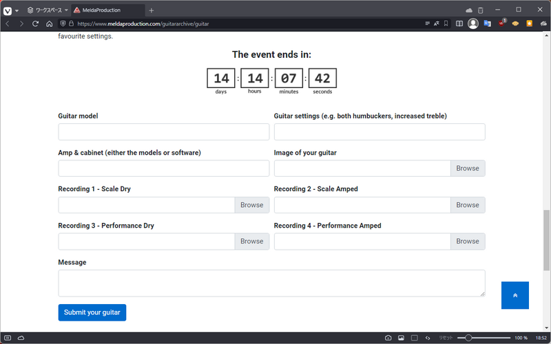 MeldaProductionからの「Record your guitar and make €30 in a few minutes」なメールに誘われこちらと出逢う。「ギターの生音でスケール」「ギターの生音でフレーズ」「アンプとキャビネット付きでスケール」「アンプとキャビネット付きでフレーズ」を録音して送ると、1セットで30€なクレジットが貰えるみたい。生音も所望するとのことでGuitar Match風な機能を考えているのかな?