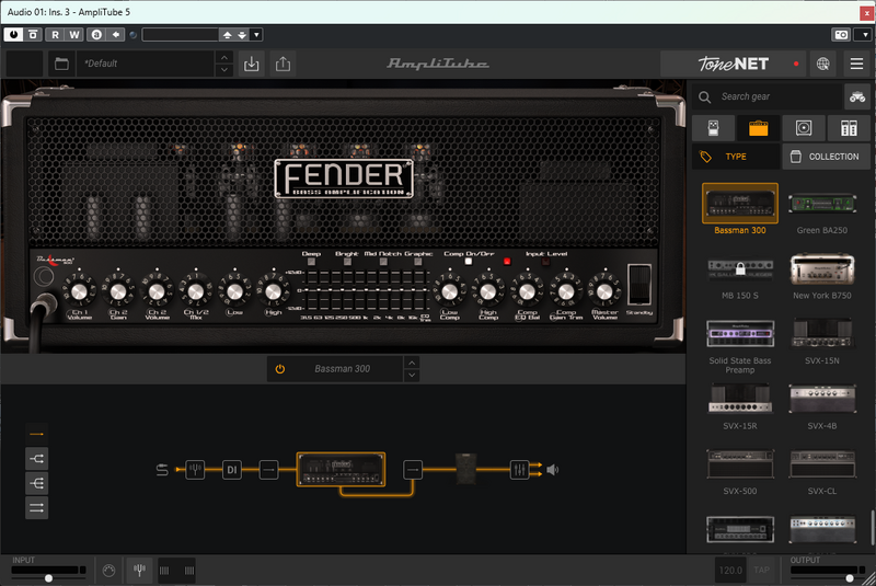 ベースの「Amped」にはAmpliTube 5の「Bassman 300」を使用。