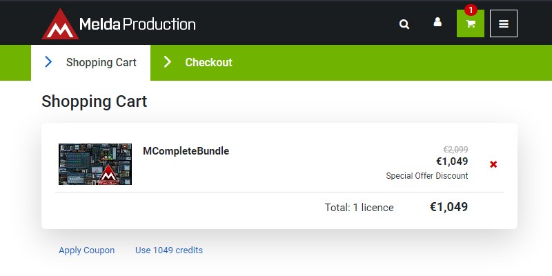 MCompleteBundleは「Every plugin MeldaProduction has released (and will)!」だし、MeldaProductionは更新無料らしいので残った「161 CREDITS」の使い道は無さそ。これまで「EUR」にしていたのを「JPY」にしてみると、MCompleteBundleは半額でも170,000円以上するのね(^_^;とにもかくにも感謝しつつ、肉体作業で疲れているので後日のんびりいぢりましょ。