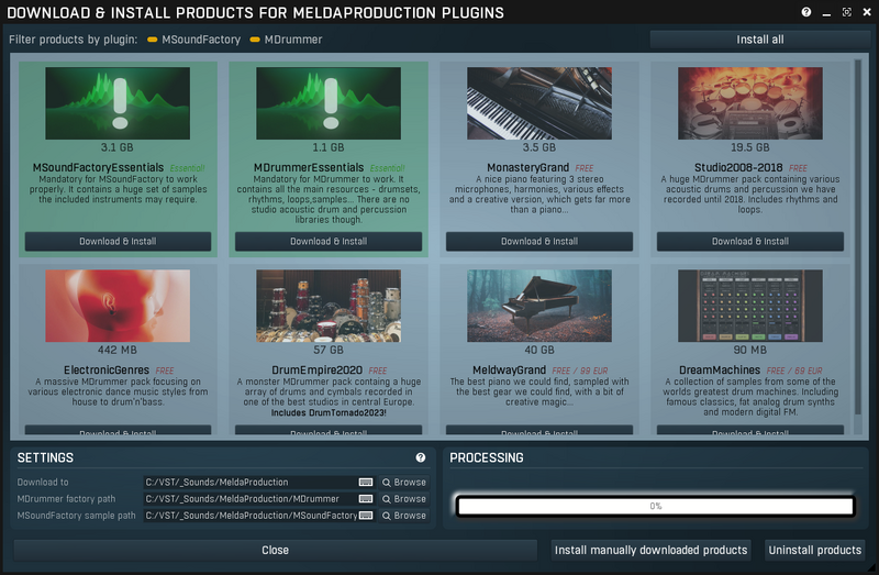Cubase上でちらほらと起動確認していると、MDrummerでは音ネタが入ってないよーで「DATA NOT FOUND」なダイアログ。MSoundFactoryの音ネタも別らしいので音ネタ用インストーラーを呼び出し、何も考えずに「Install all」。なかなか終わらないので確認すると、大きいのは57GBだったり40GBだったりでびっくり(^_^;